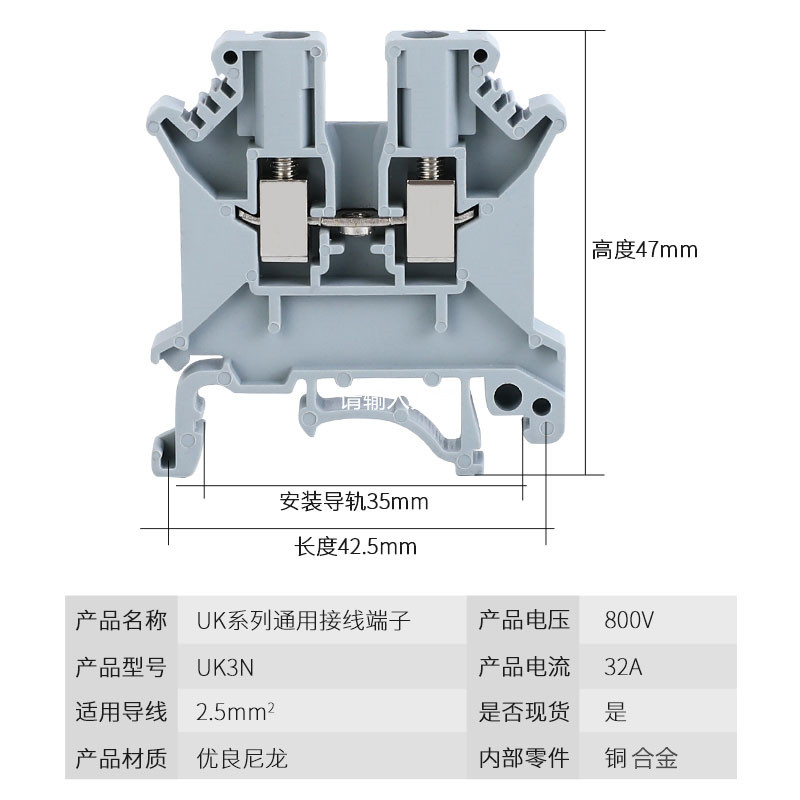 Manufacturer direct uk3n terminal row UK-3N guide rail combination 2 5MM non - slip 100 pieces 1 box