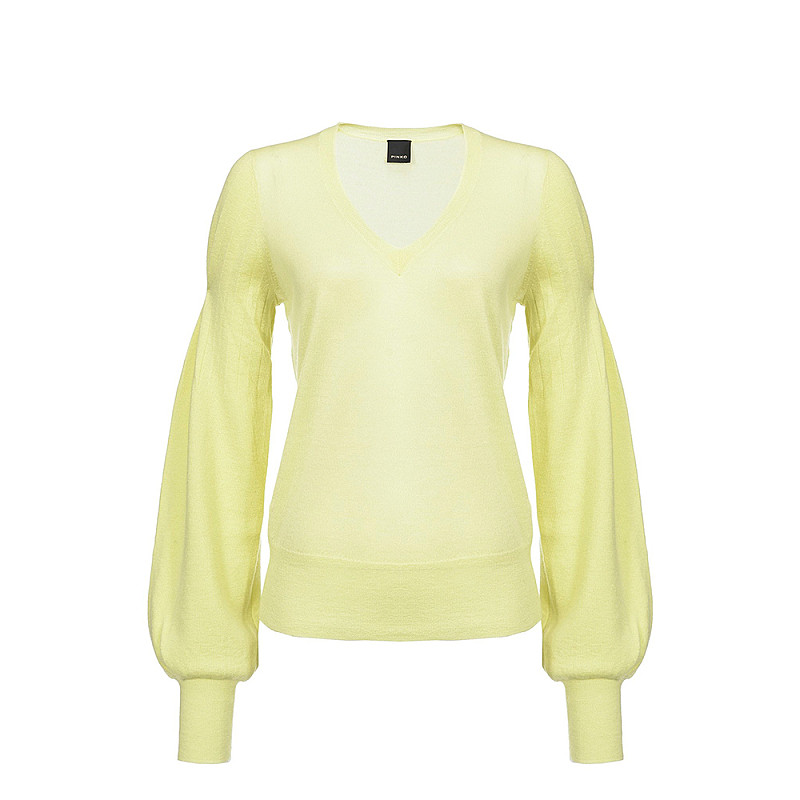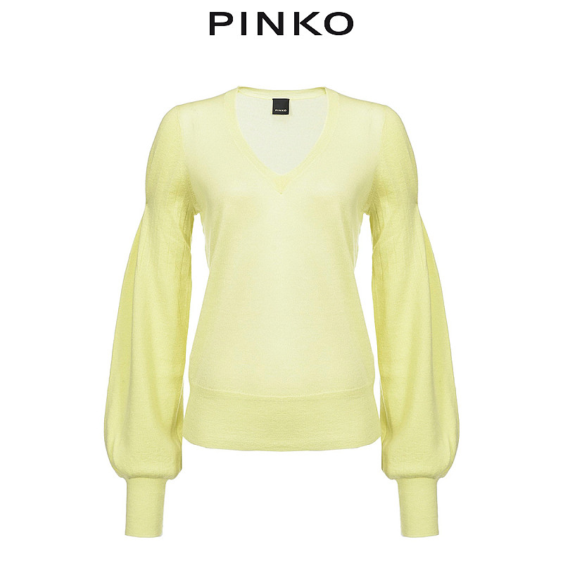 PINKO Women's V-neck Lantern sleeve Cashmere sweater Top 1G14VGY64G