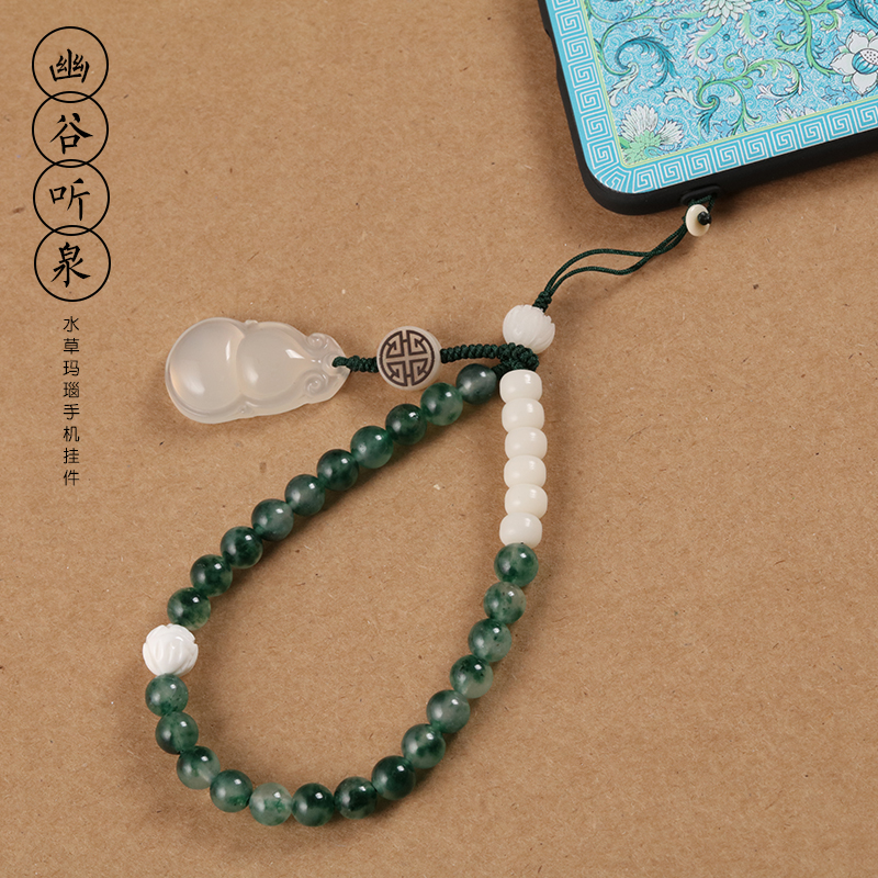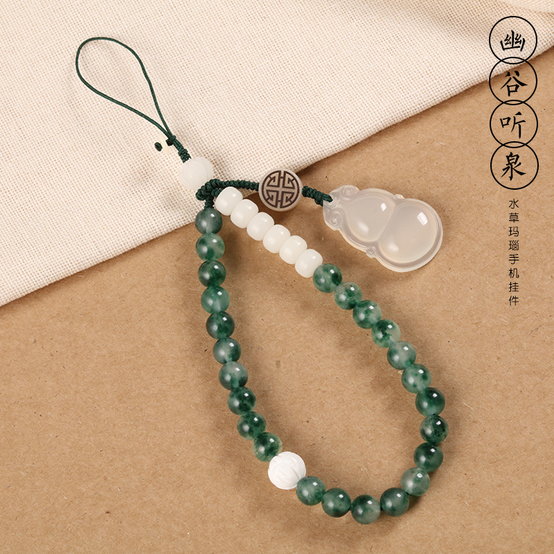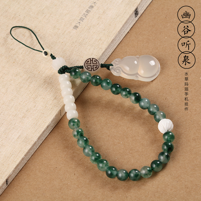 Middle country wind water grass agate jade mobile phone hanging rope hanging rope creative short wrist decoration hanging decoration female personality hanging neck ornament