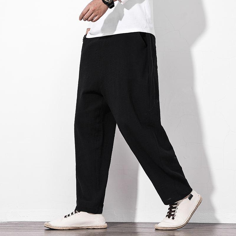 Spring Cotton Linen Pants Men Loose Broadlegged Pants Slim BREATHABLE BEACH LONG PANTS RETRO COTTON LINEN PANTS MEN LINEN PANTS