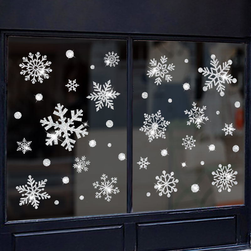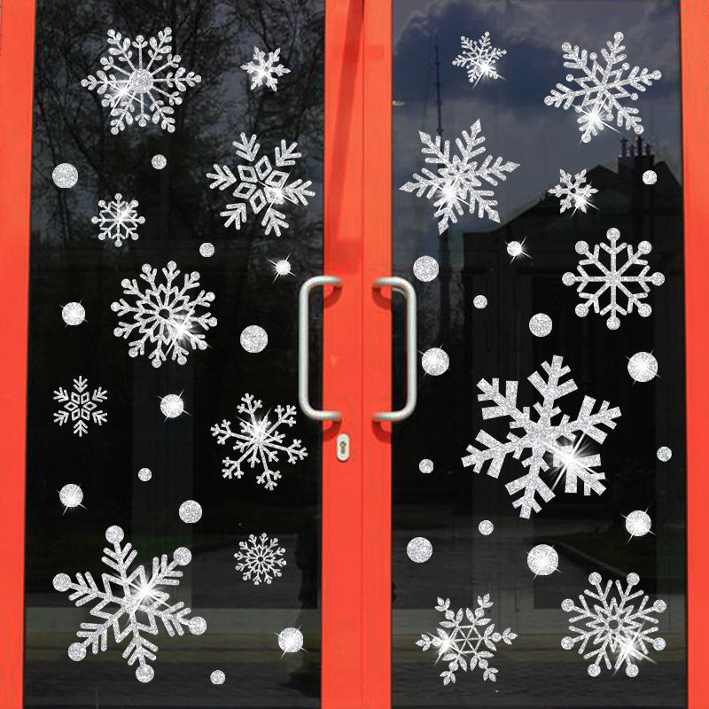 Christmas decorations windows arranged dress door shop window stickers gold silver shiny pink snowflake glass stickers