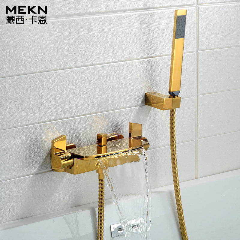 Waterfall Out-of-water bathtub tap with lifting lever shower suit-golden waterfall Out-of-tub tap shower suit-Plated Color Waterfall Outlet bathtub tap with lifting bar Shower Suit-White Waterfall Out