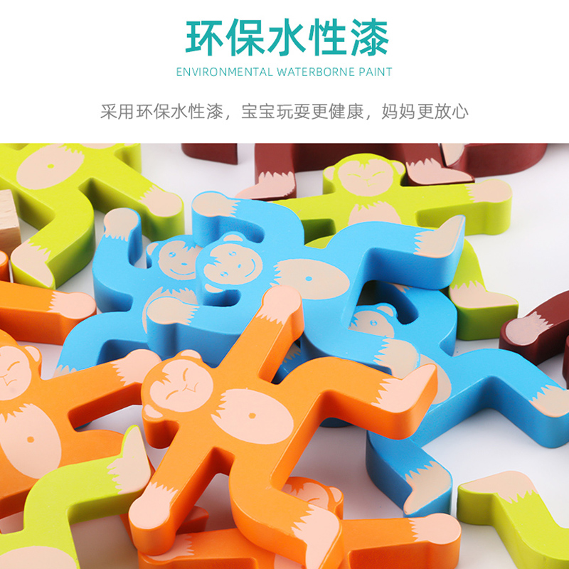 Children Stack Legit Building Blocks Monkey Balance Toy Boys Girls Early Education Puzzle Parquet Wooden Parenting Games