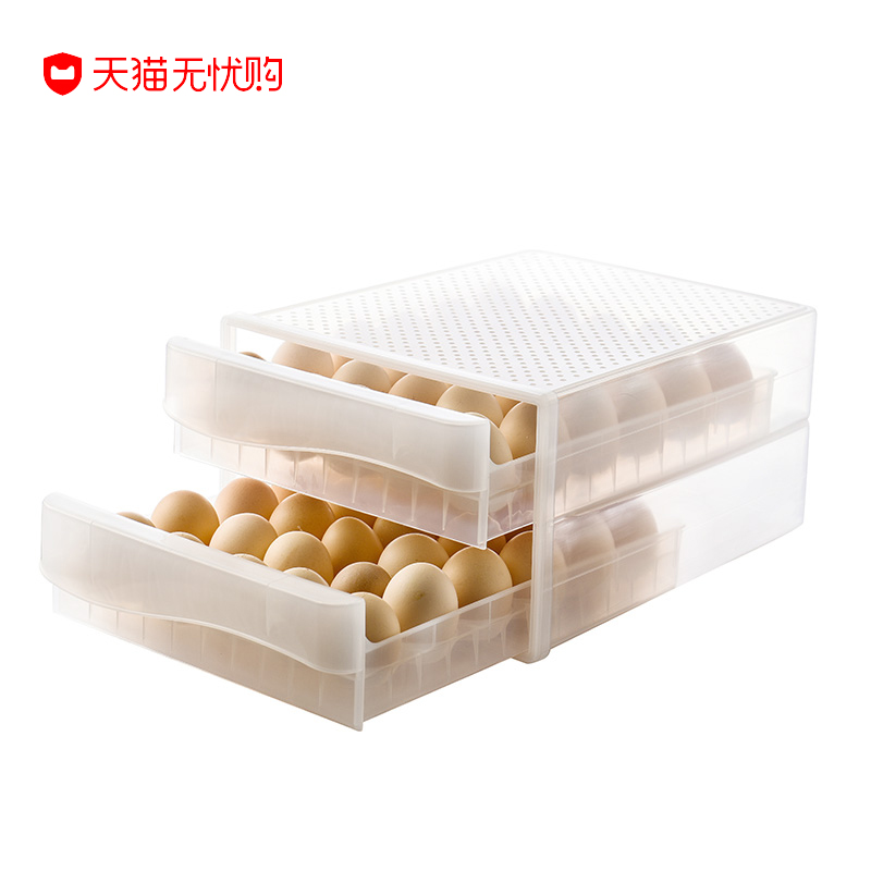 Double-layer drawer egg box can put 60 double-layer drawer dumpling box can put about 300 dumplings Single-layer 30-cell egg box can be superimposed double-layer 60-cell egg box can be superimposed four