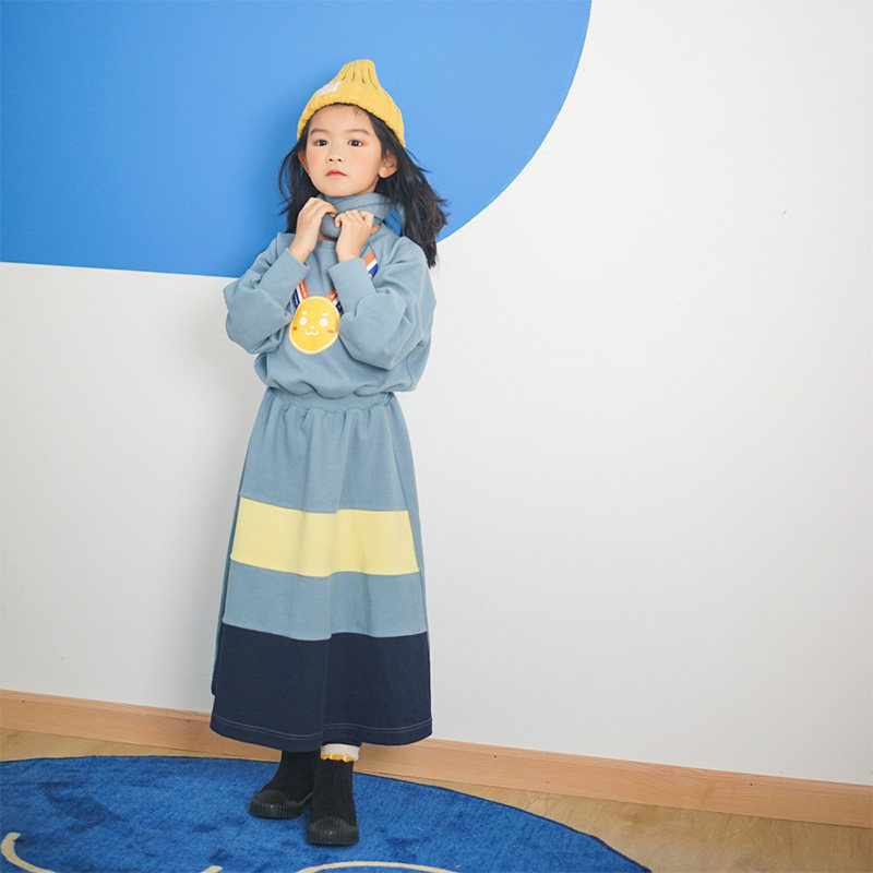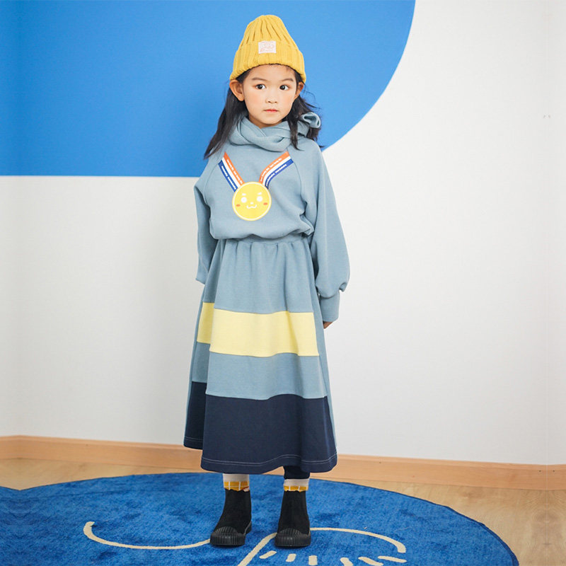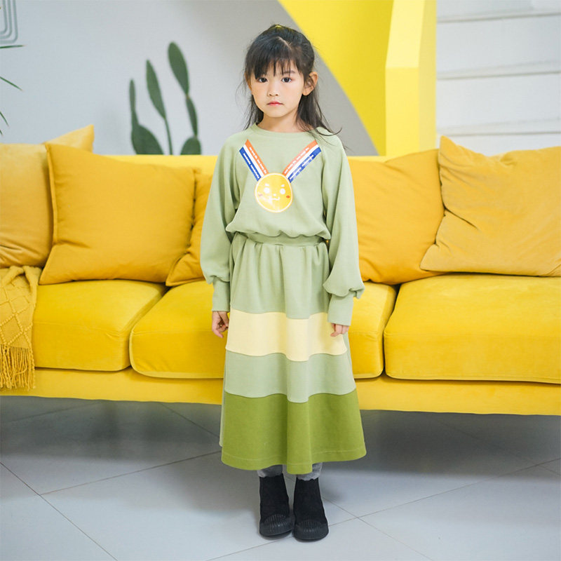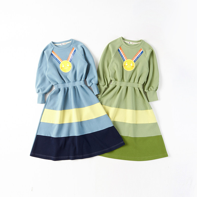 MARUKO HAHA girls champion gold medal print dress spring foreign style mid-length cake skirt