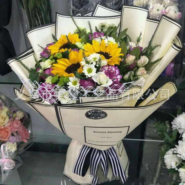 Flowers wrapping paper Korean-style rims Natural Paper Gift Bouquet Wrapping Paper with golo English Border Packaging Paper