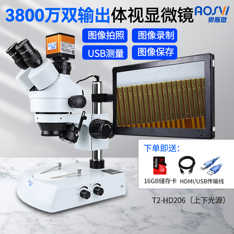 Auss micro industrial stereo microscope digital HD asana optical microscope video professional electronic magnification with display screen mobile phone repair PCB detection