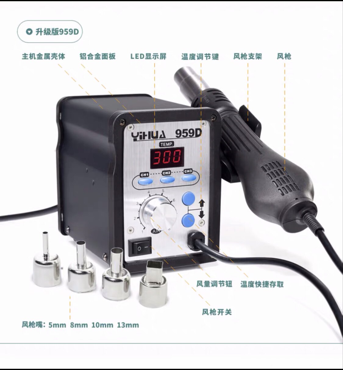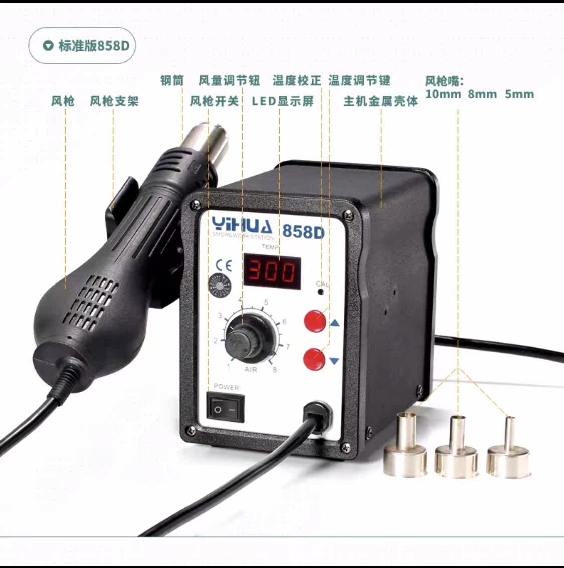858 alloy shell Silicone wire 858D digital display metal shell Silicone wire 858D package 1 upgrade 959D series upgrade 959D package 1