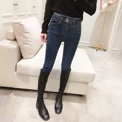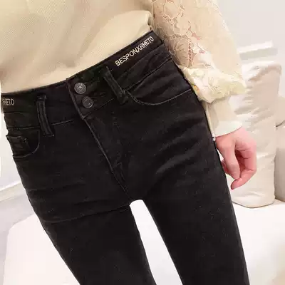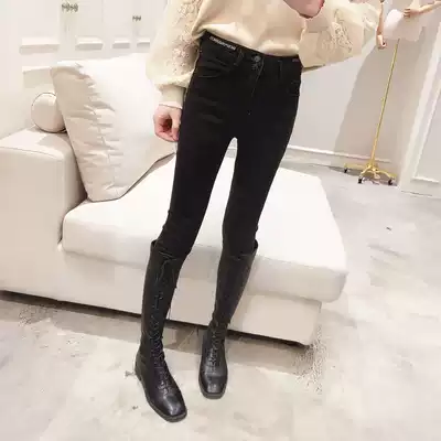 Jeans women's winter plus velvet 2021 new Korean fashion western style high waist thin tight thick pencil cigarette tube pants