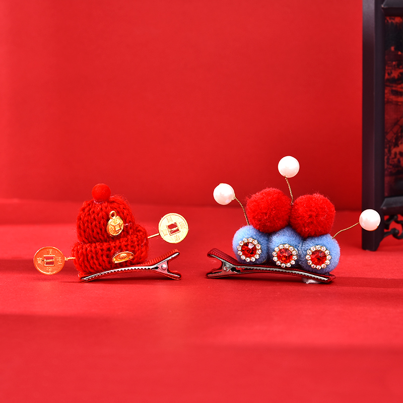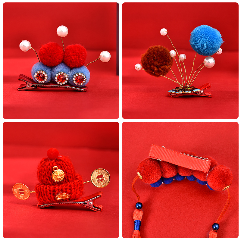 Year of the Ox hair ring 4 7 red rhinestone bows a single 13 opera style hair ball pearls (collection plus purchase enjoy priority delivery) #bowknotpiny 18 21#9 red flower hair ring