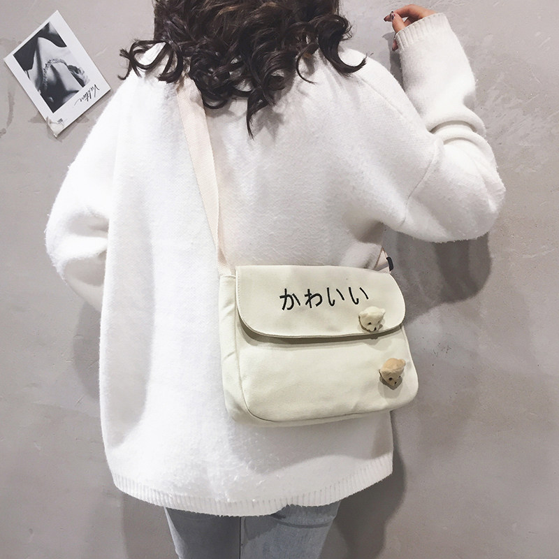Cute Panda Canvas Pouched Bag Woman Bag New 2022 Students Teenage Girl Casual Twill Bag 100 Hitch Shoulder Bag Tide