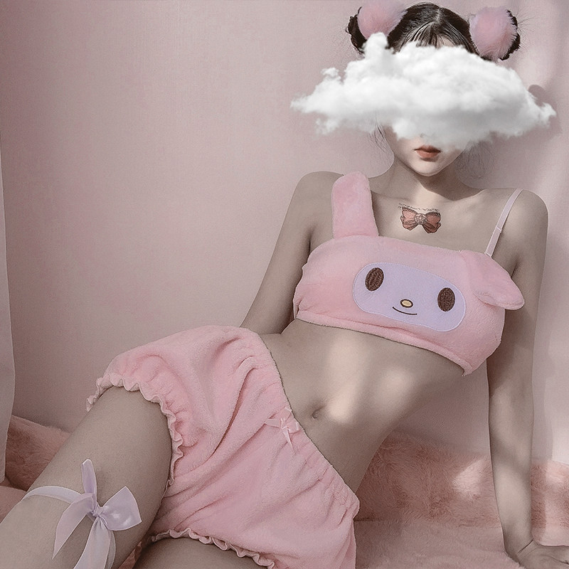 Nanazi sister girl underwear plush soft cute suspender bra cartoon autumn winter cute pajama set Yugui dog