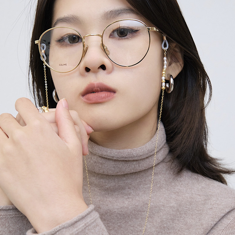 Natural pearl glasses chain female 14K gold-coated simple non-slip lanyard hypoallergenic fashion net red chain for elders