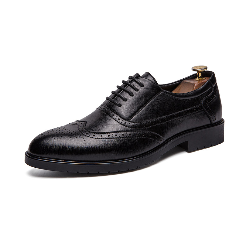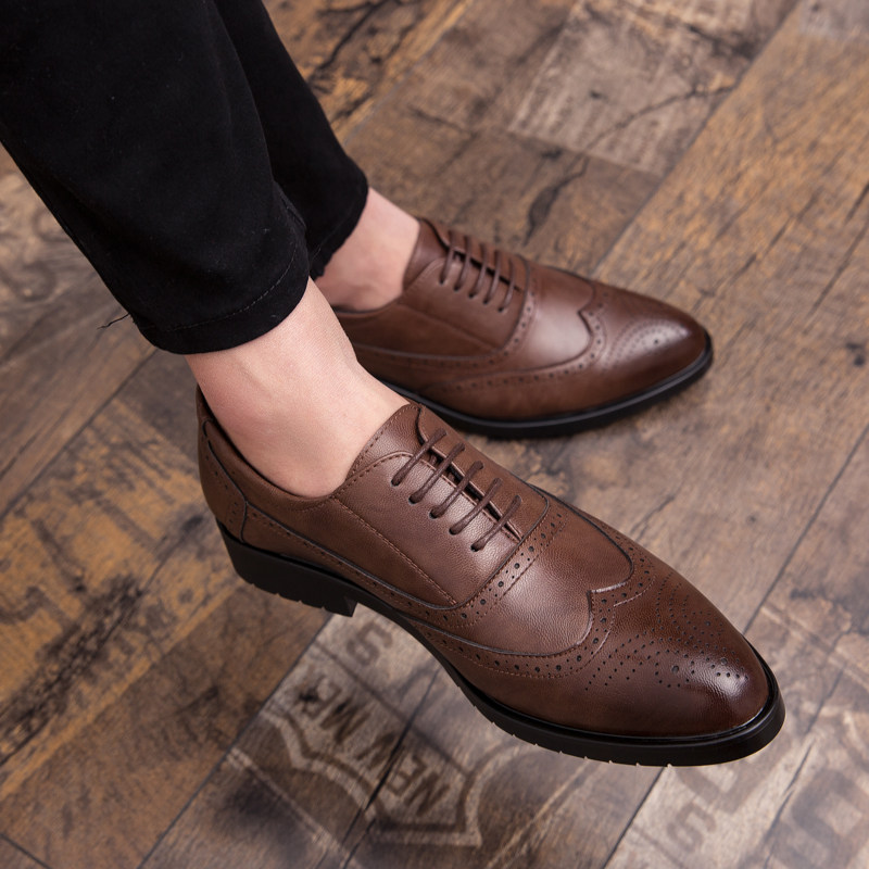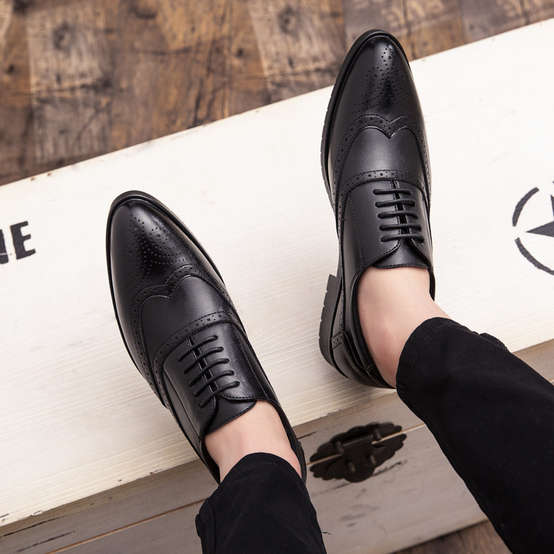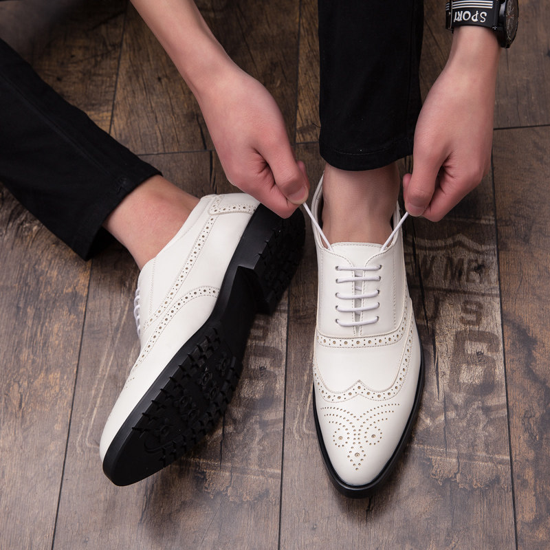 Burlock carved leather shoes men's Korean version Inlentide shoes Business Fashion Casual 100 Hitch White Groom Shoes Man
