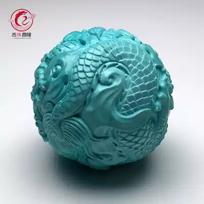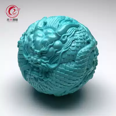 Jixiang Changlong original mine natural high porcelain blue turquoise dragon ball boutique jade carving back pattern round beads with bead jewelry