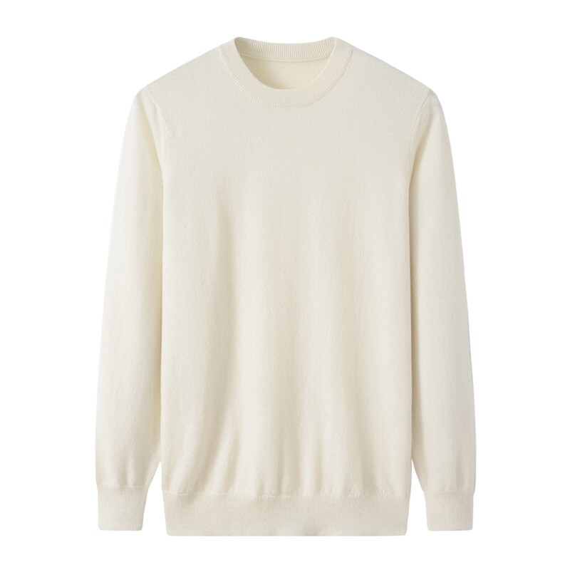 Natural cashmere-clear cabin-Coarse Spun Round Collar Men Cashmere Sweater-monochrome 100 lap pure cashmere sweater