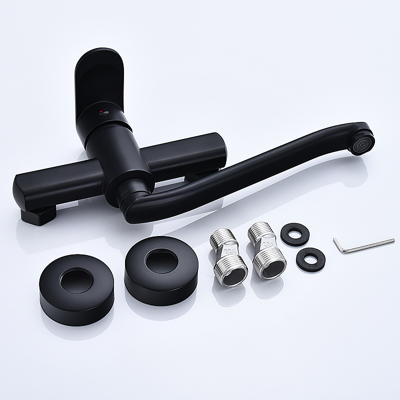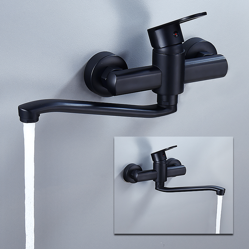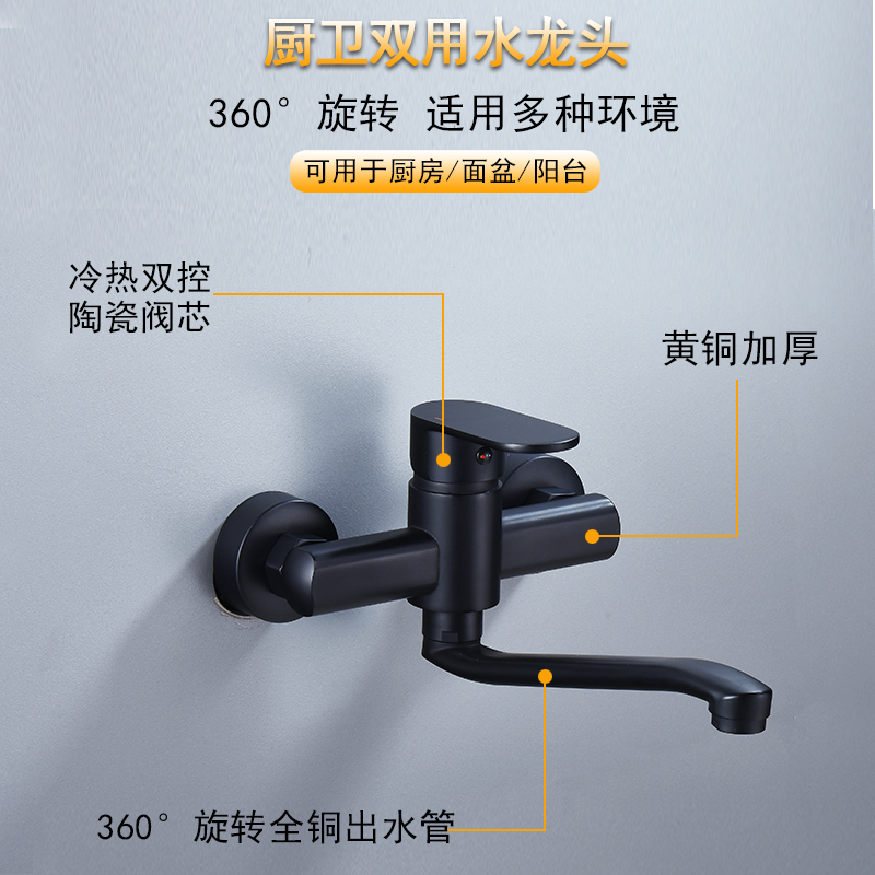 Black Kitchen Tap Nordic Mop Pool Wash Vegetable Basin Balcony Laundry Pool Twin-hole-in-wall hot and cold tap