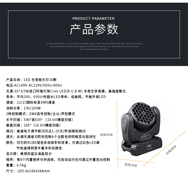 LED Ecstasy Light Beam Lamp Rotating 36 Dyeing Lamps Small Diamond Wedding bar Performance Stage Light Equipment