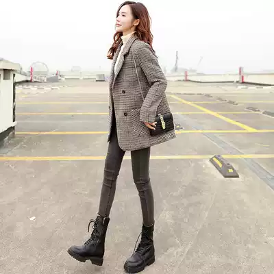 Hairy Plaid Blazer Blazer women's 2021 Spring and Autumn New Korean slim Joker vintage small suit women's coat
