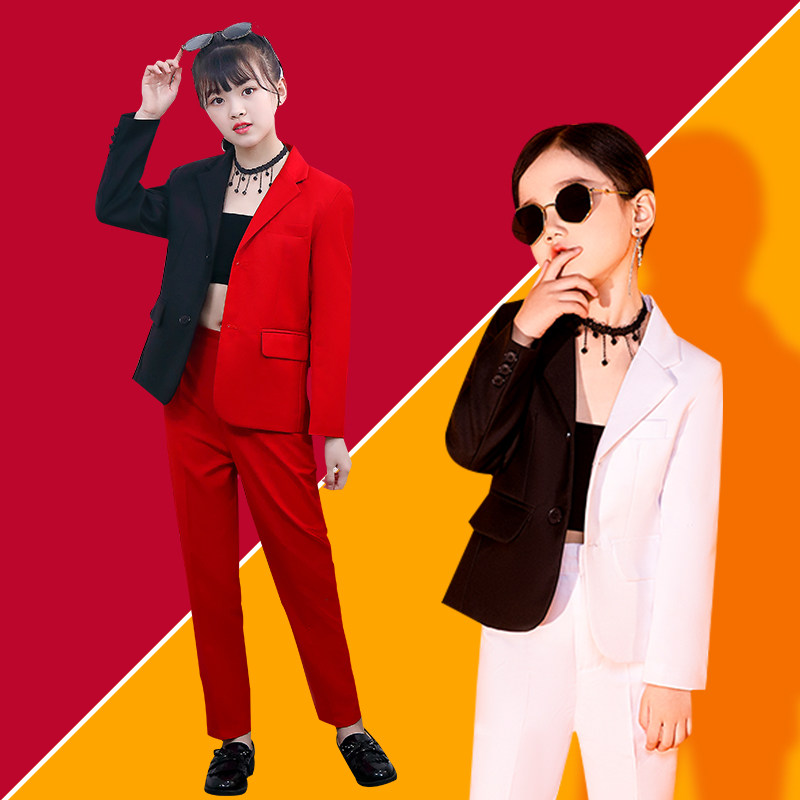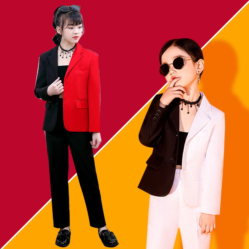 Children's color-colored suit set in the childhood model drafting team tidal stage show dress