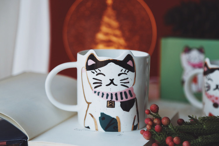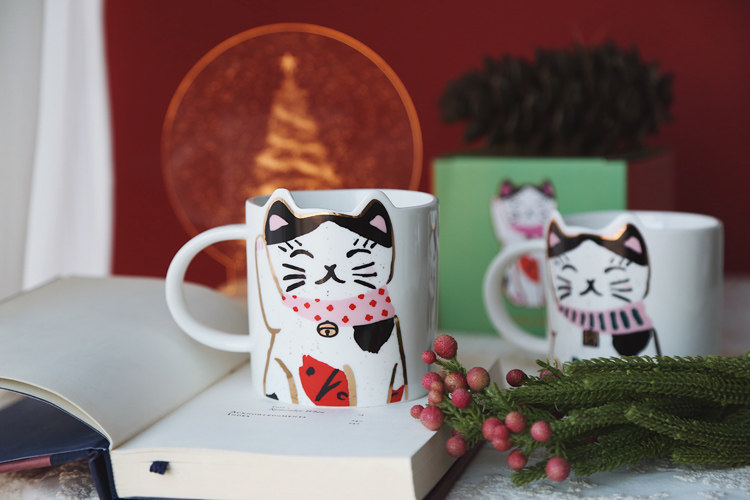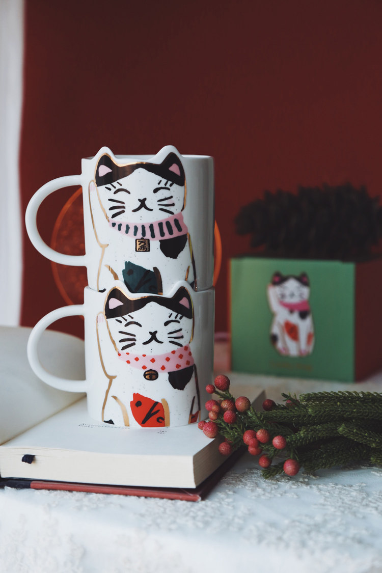 Lovely New Year's Christmas good luck auspicious meaning gift couple ceramic milk cup water cup good luck cat
