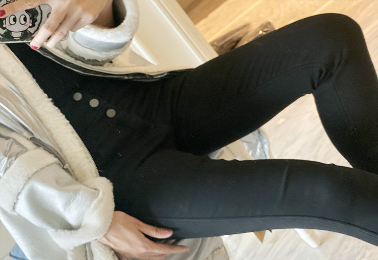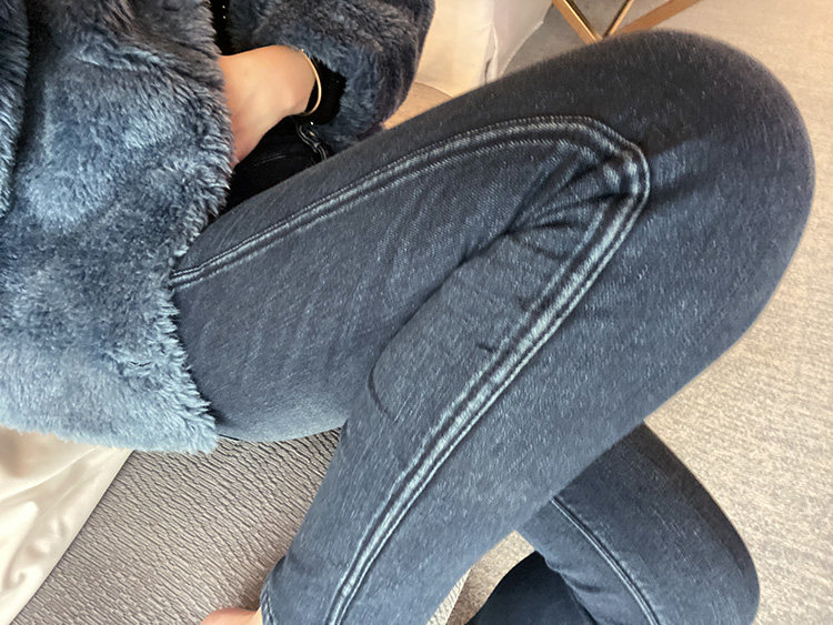 Even colder winter wear this thicker high waist three-row buckle fever jeans double layer warm-up.