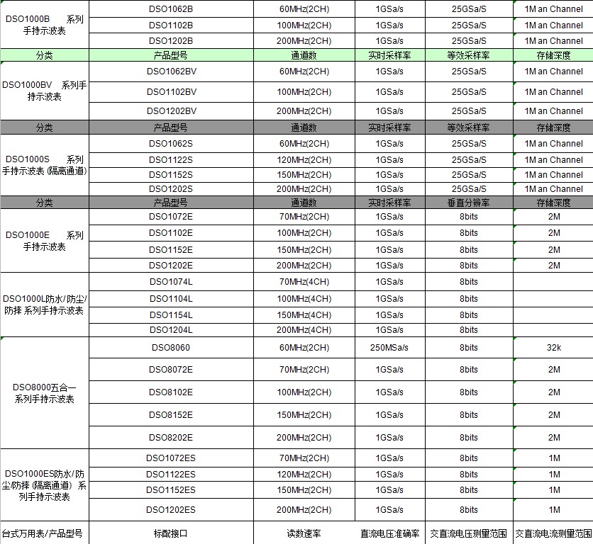 DSO1062BV(60MHz) DSO1102BV (100mhz) DSO1202BV (200mhz)