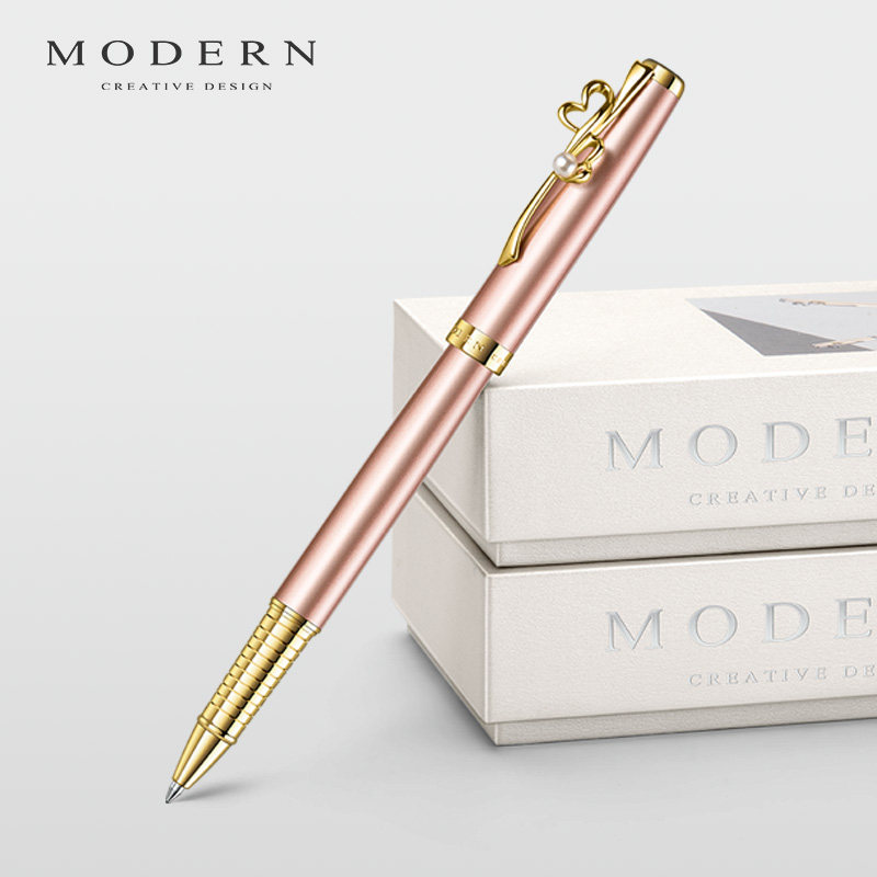 German MODERN four-leaf straw signature pen upscale creative business Baozhu pen metal lettering custom Christmas gift