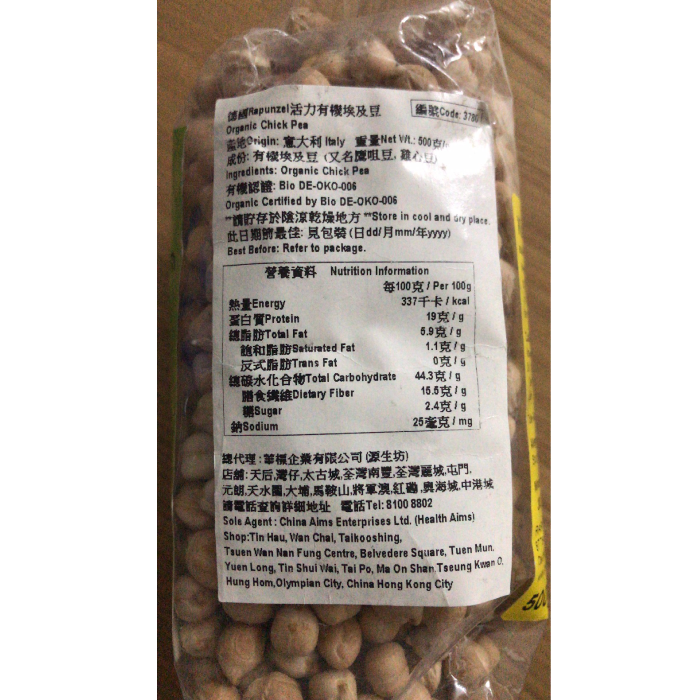 Rapunzel Organic Chickpeas High Protein High Calcium Baby Food Supplement Sugar Control Low GI Light Food Meal Replacement Imported from Germany