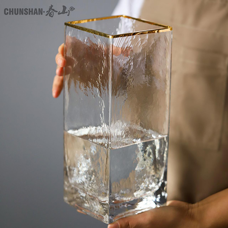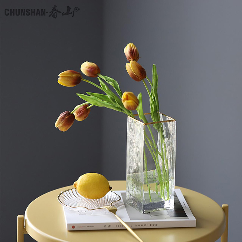 Spring Mountain Glass vase Nordic INS Wind minimalist about modern sketch Golden Texture Rectangular Instrumental home guests Dining Room Swing
