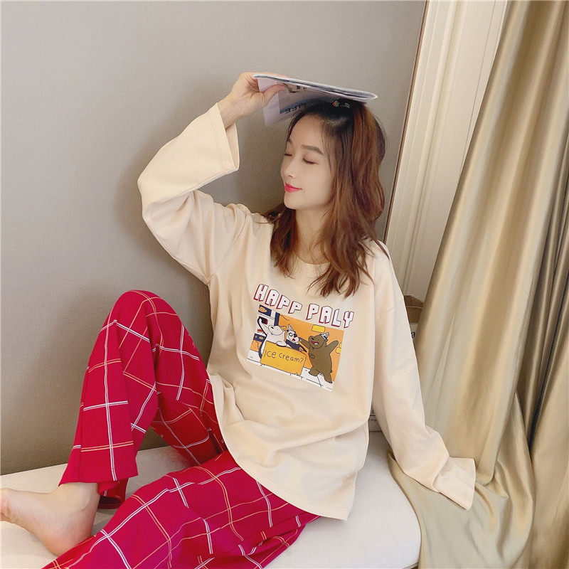 Spring and autumn thickened cotton pajamas women's fruit printed home clothes plus fat XL fat mm200 catties suit spring