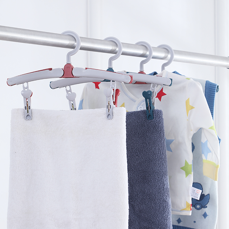 Travel folding clothes hanger multi-functional clothes rack household windproof clothes drying rack plastic children's clothes hanging clothes drying rack