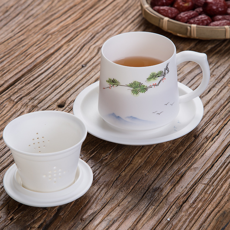 Peng Cheng Wanli goat fat jade white porcelain with filter office cup ceramic tea cup home with cover water cup Coffee lovers cup-Taobao