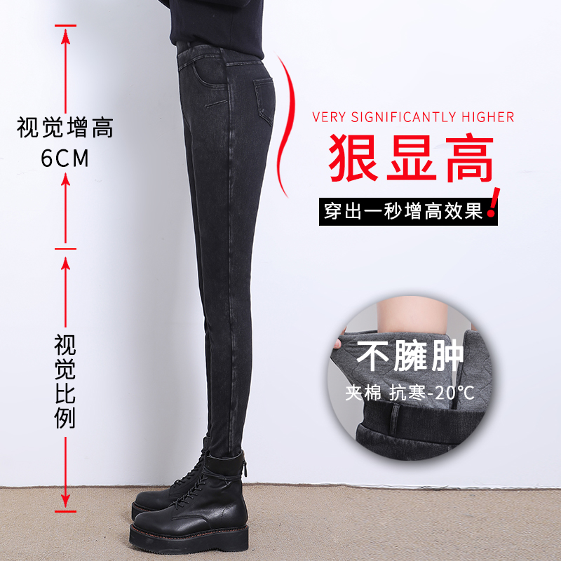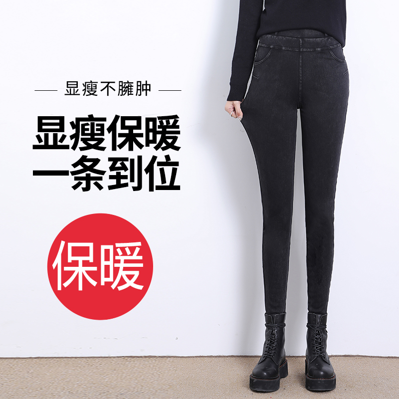Jeans Woman Autumn Winter Plus Suede High Waist Display Slim Smoke Pipe Trousers Thickening Tight Fit Pants Outside Wearing Tight Waist Large Size Elastic
