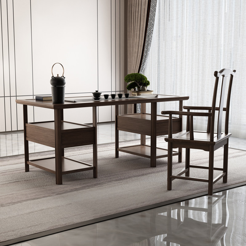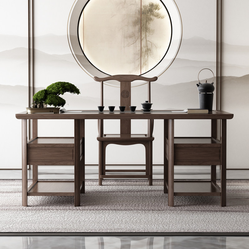 Old wood desk Study office suit combination New Chinese painting case Household simple desk Solid wood calligraphy painting table