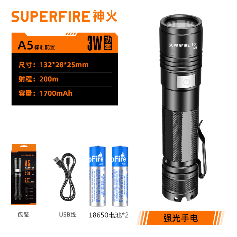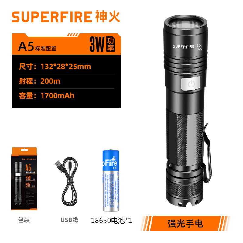 God Fire A5 Intense Light Flashlight Usb Charged Multifunction Small Portable Emergency Home Outdoor Glare Light
