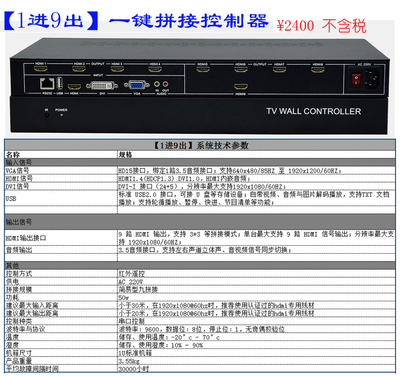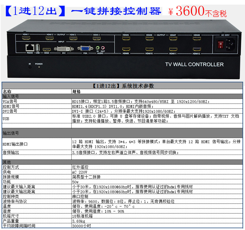 4K LCD TV splicing box 1 in 4 6 9 12 out HDMI matrix host multi-screen image processor U disk broadcast