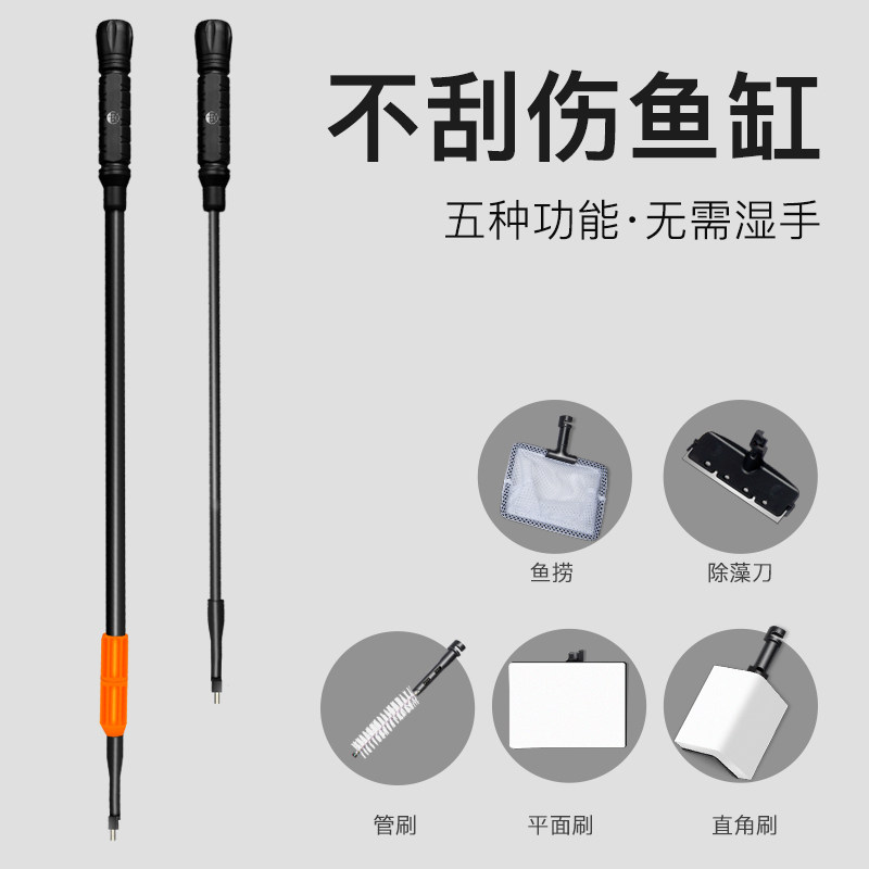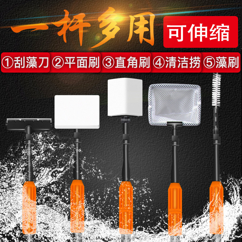 Fish tank brush cleaning long handle tool old wipe cleaning artifact fishing algae knife five-in-one no dead angle craftsman glass wipe