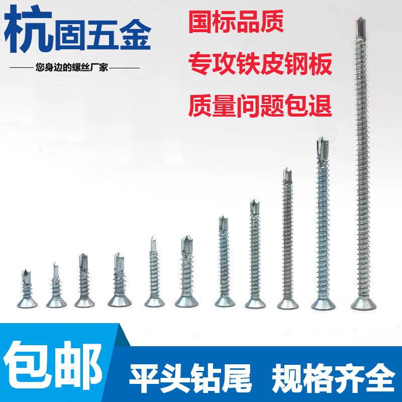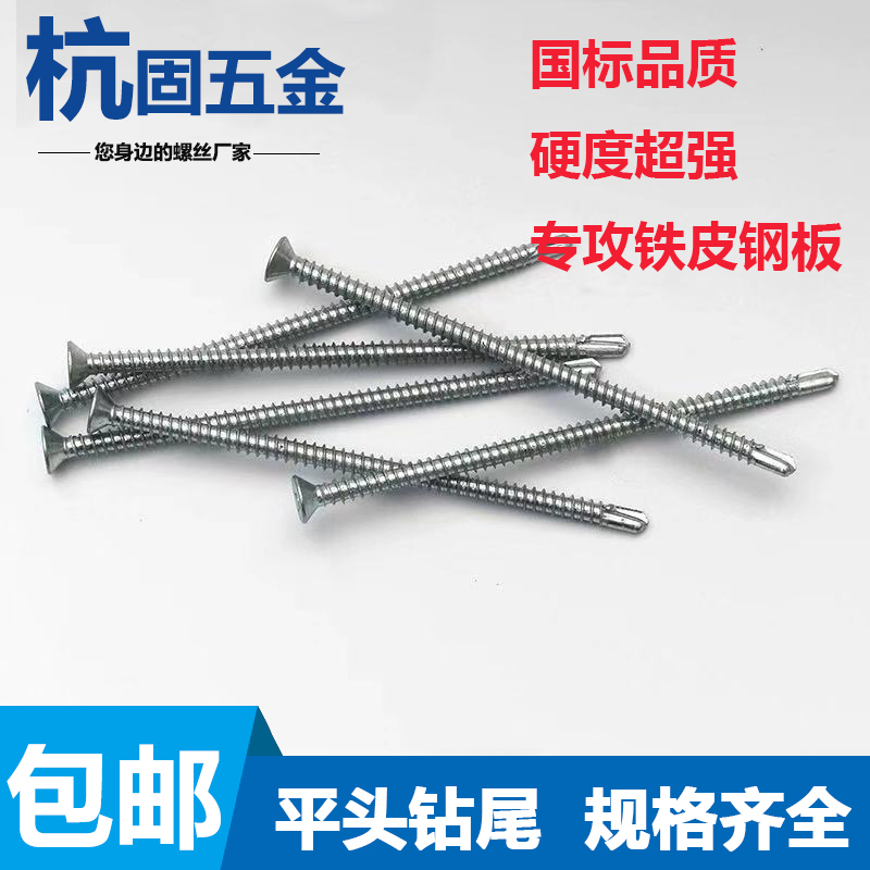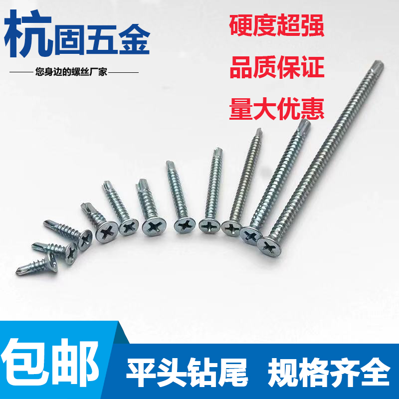 Dovetail self-tapping self-drilling screw flat head cross drilling iron steel plate high strength lengthened sink galvanized drilling tail screws