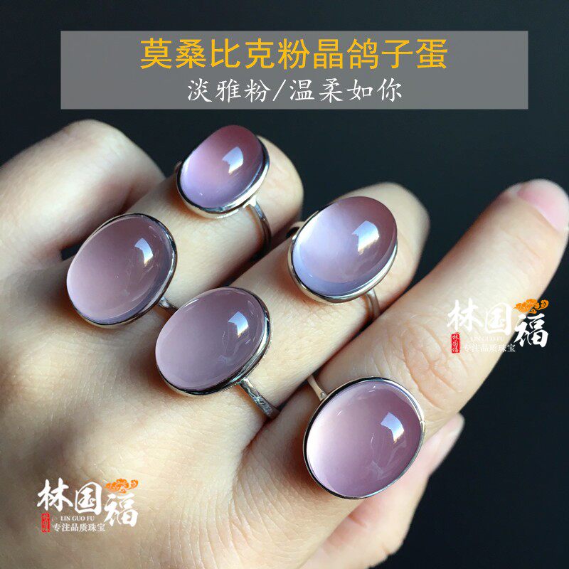 "Powder Light Fat" Clear Pale Pink Mozambique Powder Crystal Ring Mo Powder Pink Crystal Lady with a little fresher