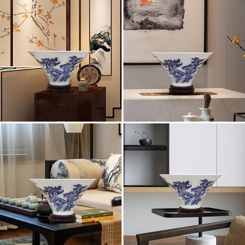 Jingdezhen Ceramic Ware Pendulum with green flower Porcelain Decoration Bowl of Bamboo Bowl Large Noodle Bowl Mesh Red Shivering Sound Self Media Props Bowl