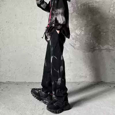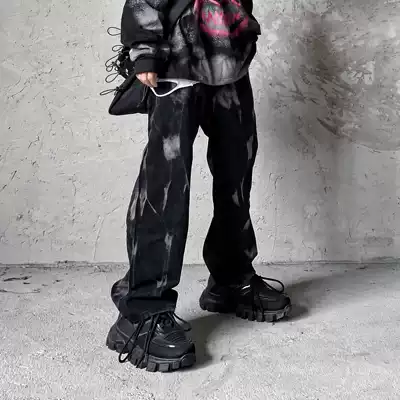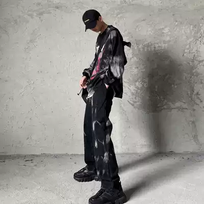 old school tie-dyed washed loose retro wide-legged straight Tide brand jeans mopping trousers men