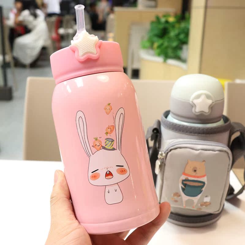 Baby Baby Warm Bottle With Straw Cartoon Cute Hot Water Student Portable Large Capacity Dual-use Cup Insulated Kettle-Taobao