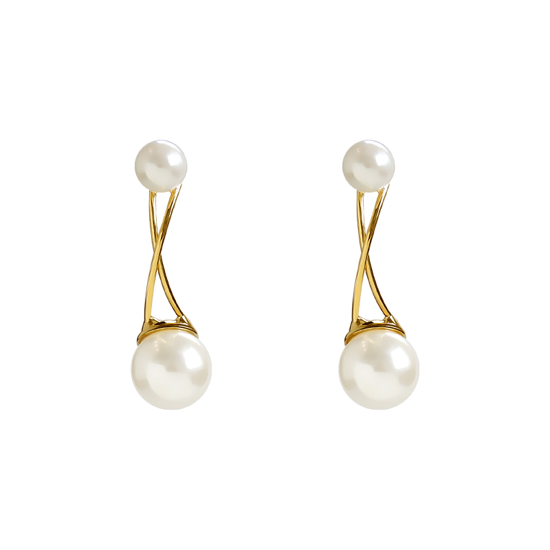 Korean cross pearl earrings female simple temperament ear needle 925 sterling silver needle small earrings commuter fashion ear jewelry