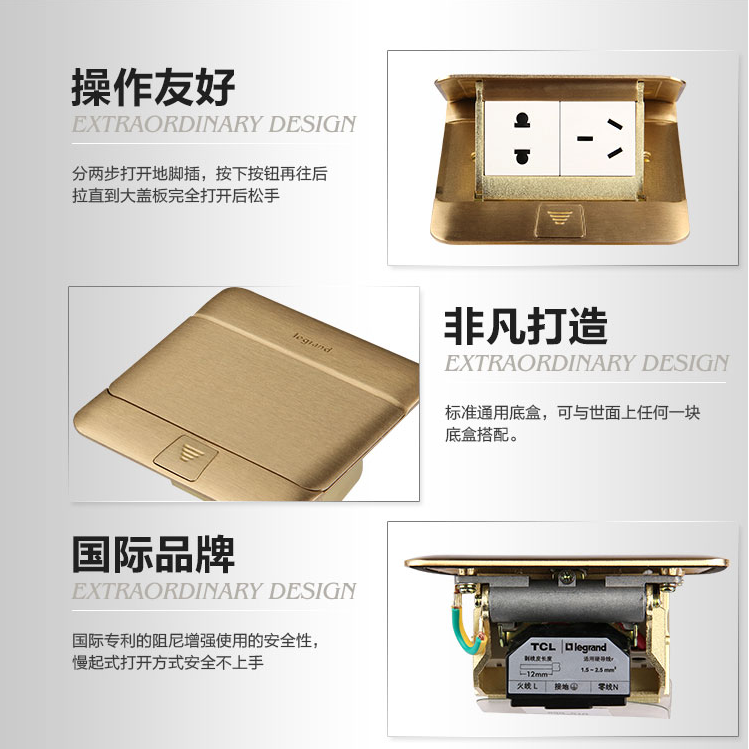 TCL Legrand plugs all copper waterproof socket hydraulic buffer 5 five-hole two-three plug-in damping floor plug-in bottom box