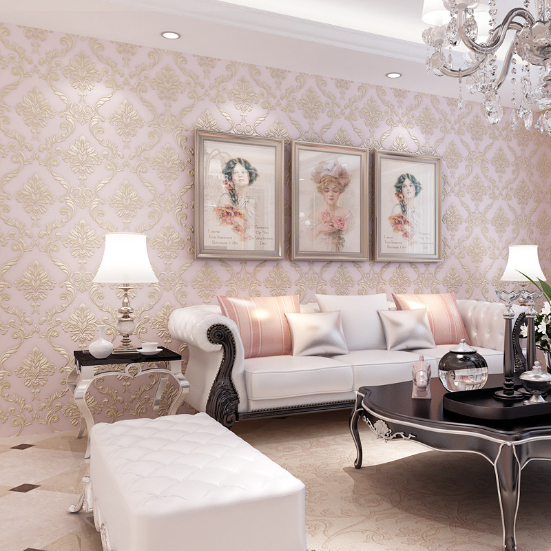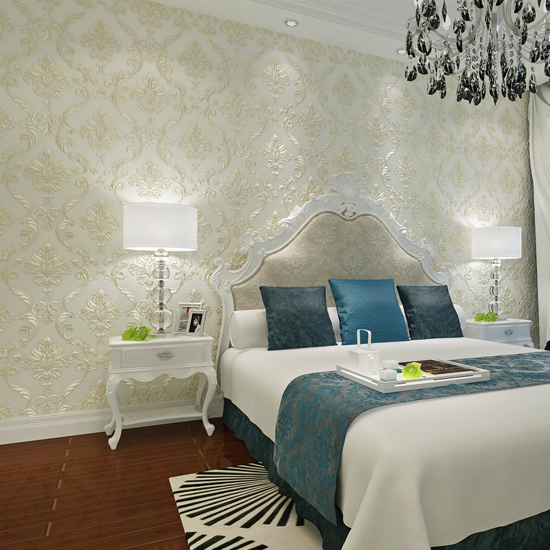 Luxury European - style Damascus non - woven wallpaper 3D stereo engraved bedroom living room TV background wallpaper