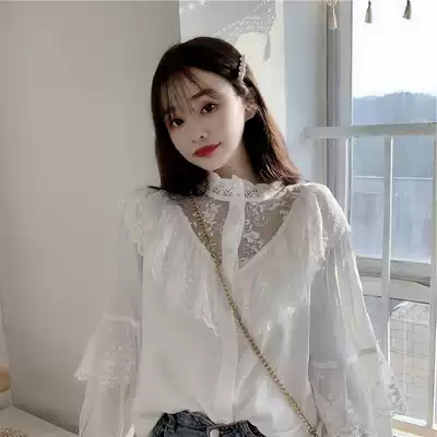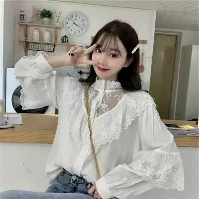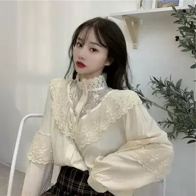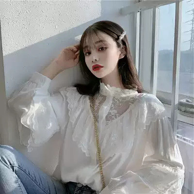 Autumn and winter New style lace base shirt ladies lantern sleeves with exquisite small shirt Super fairy princess style top