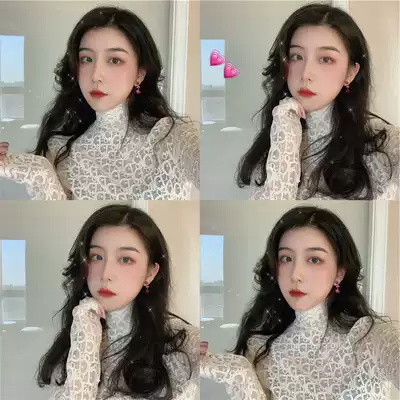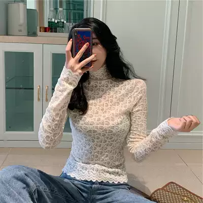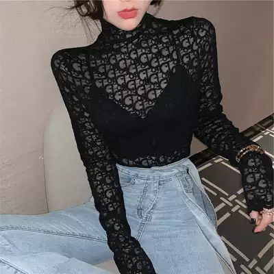 Spring and autumn new semi-turtleneck lace bottoming shirt women's long-sleeved inner exquisite small shirt Western style embroidered hollow top
