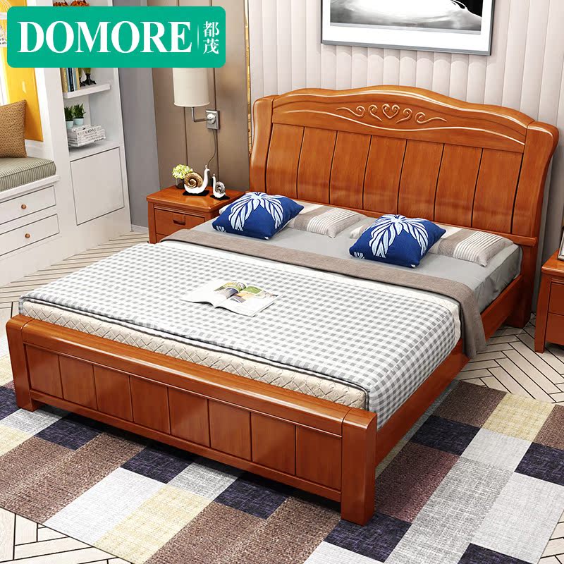 Modern Chinese style solid wood bed double bed 1 8m 1 5m simple storage air pressure high box bed bedroom furniture