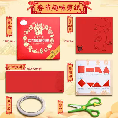 Paper-cut handmade Chinese style Year of the ox Spring Festival New Year window grilles Children's kindergarten baby special paper Color photocopying paper pattern background semi-finished products diy production material package set full set of primary simple